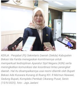 Hal itu disampaikannya usai resmi dilantik oleh Bupati Bekasi, Ade Kuswara Kunang, di Ruang KH. R Ma’mun Nawawi, Gedung Bupati, Kompleks Pemkab Cikarang Pusat, Senin (15/9/2025).