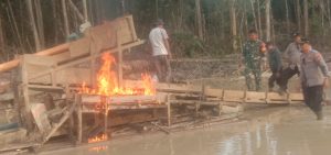 Dalam penertiban tersebut, personel Polsek berhasil memusnahkan dengan cara dibakar beberapa peralatan yang digunakan untuk kegiatan PETI, seperti mesin diesel dan peralatan lainnya.